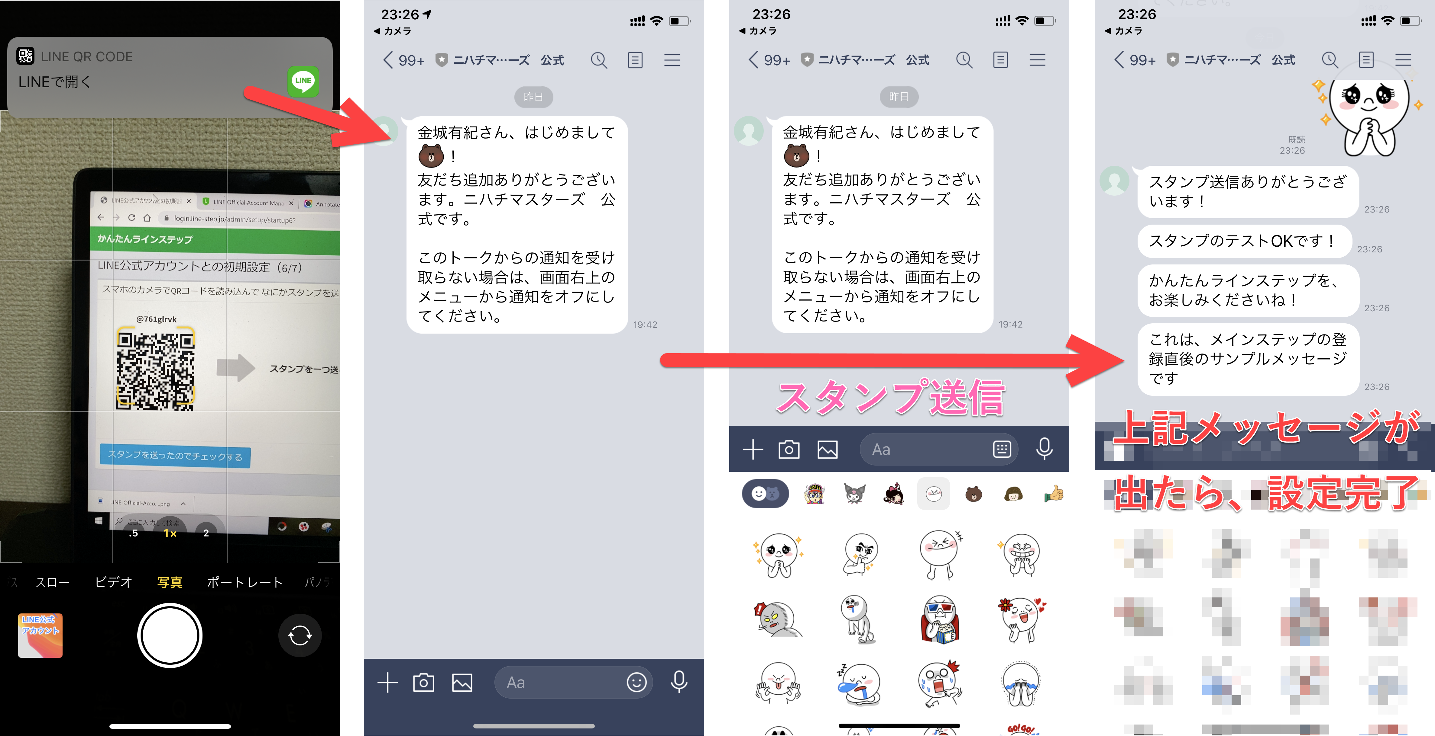 以上4点の設定項目を、今一度、確認してから、再度、LINEアプリからLINE公式アカウントへスタンプ送信してください。