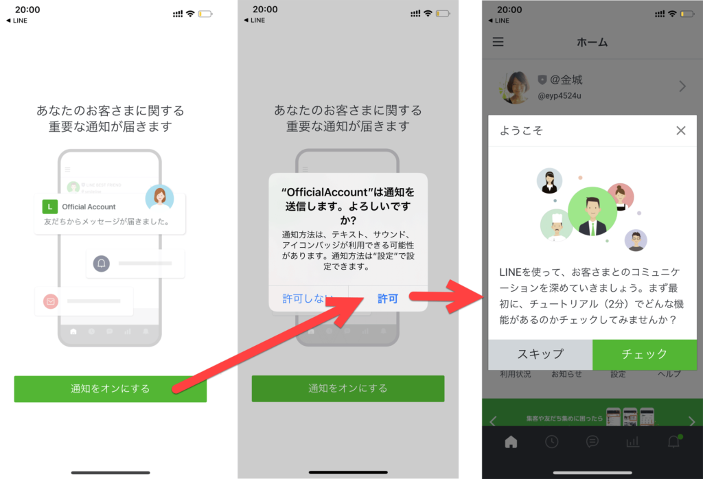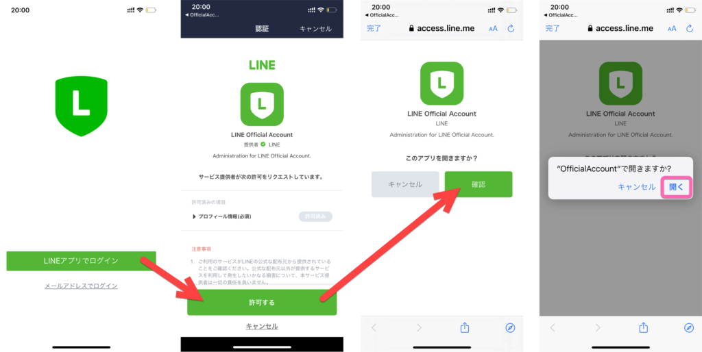 「LINE公式アカウント」アプリをダウンロードし、アプリの起動時にLINEで認証してください。