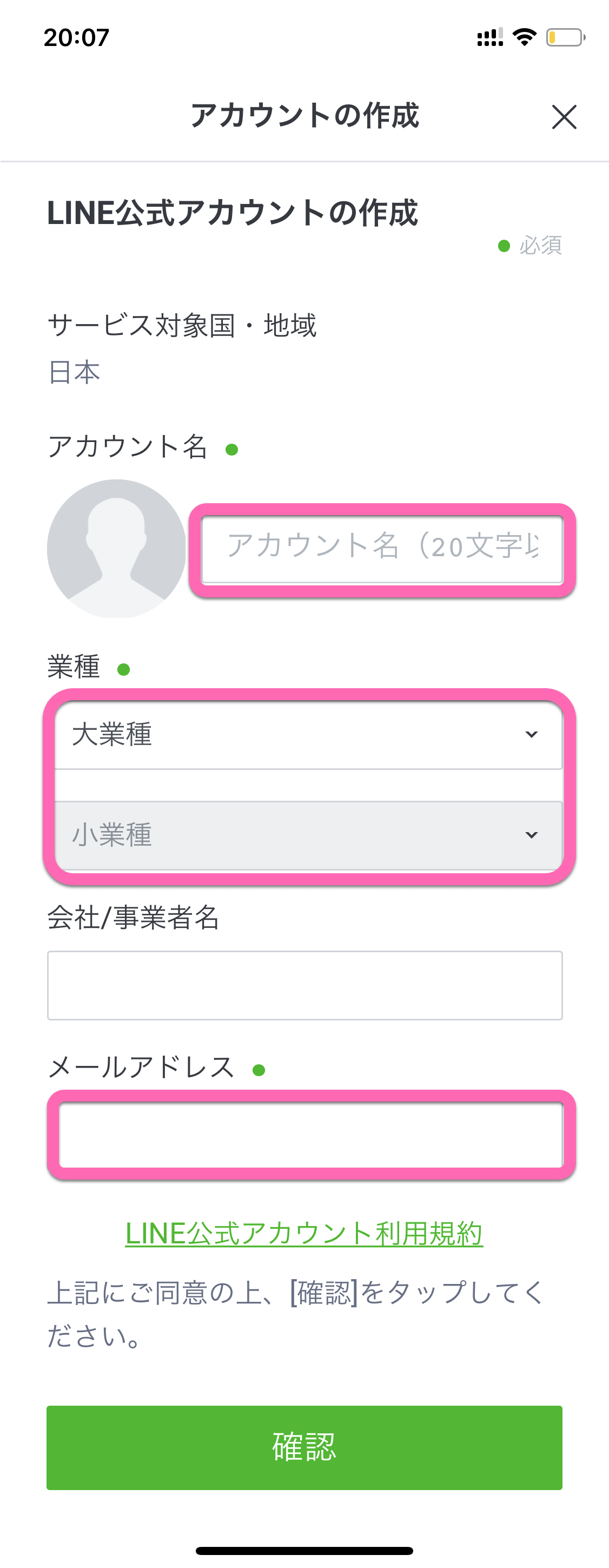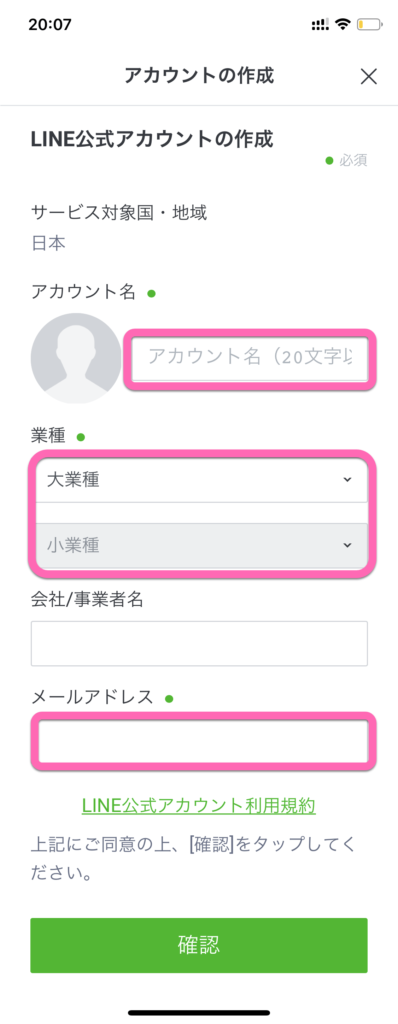 LINE公式アカウントの名称は後から変更できますが、大業種&小業種についてはあとから変更できませんので、ご注意ください。
