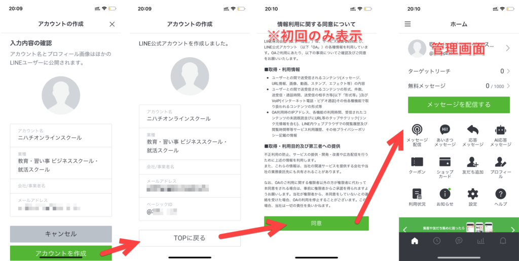 最後に、LINE公式アカウントの管理画面が表示されれば、アカウント開設は完了です。